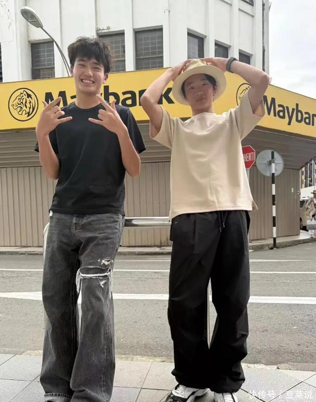 在Joe的社交平台,晒出二人合影。17岁的Joe长得高大帅气,穿一件黑色T恤、个性的牛仔阔腿裤,头发烫了好看的纹理卷,显得五官更加立体俊朗。 杨阳洋的颜值,就是一言难尽了。杨阳洋比Joe小一岁,现在岁了。外婆陪着他在香港读书,也是很独立的孩子。