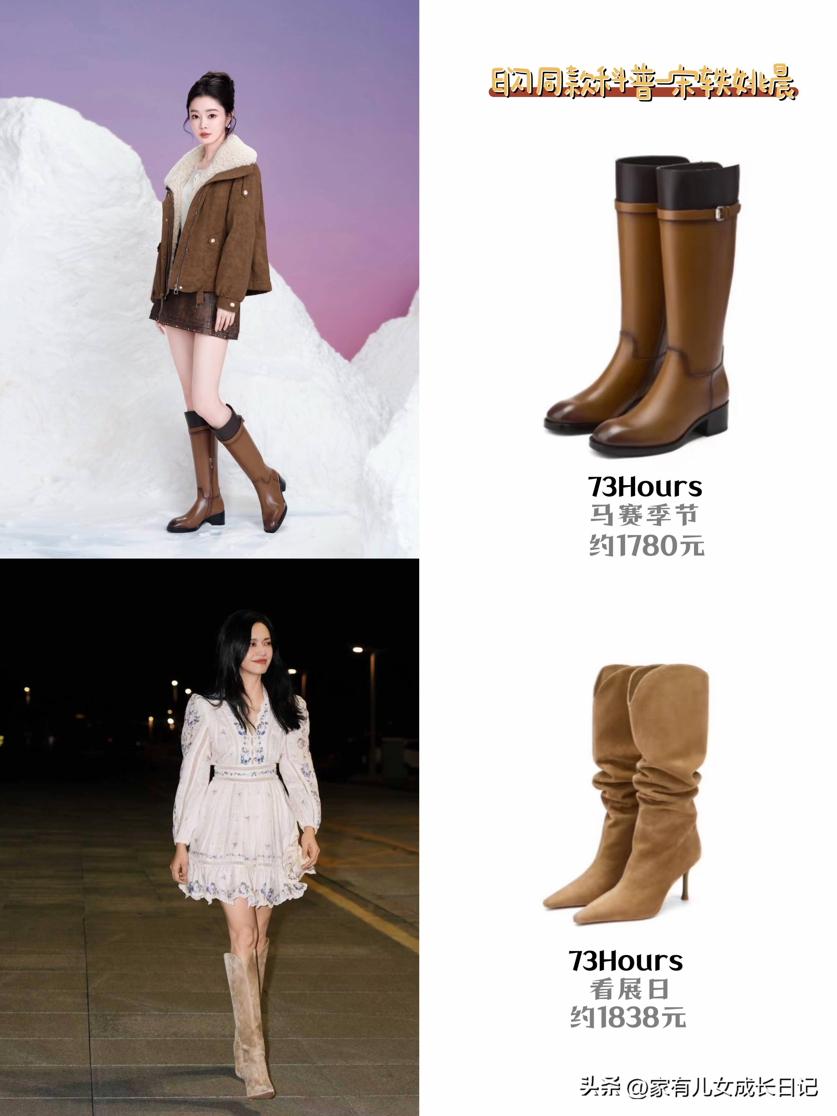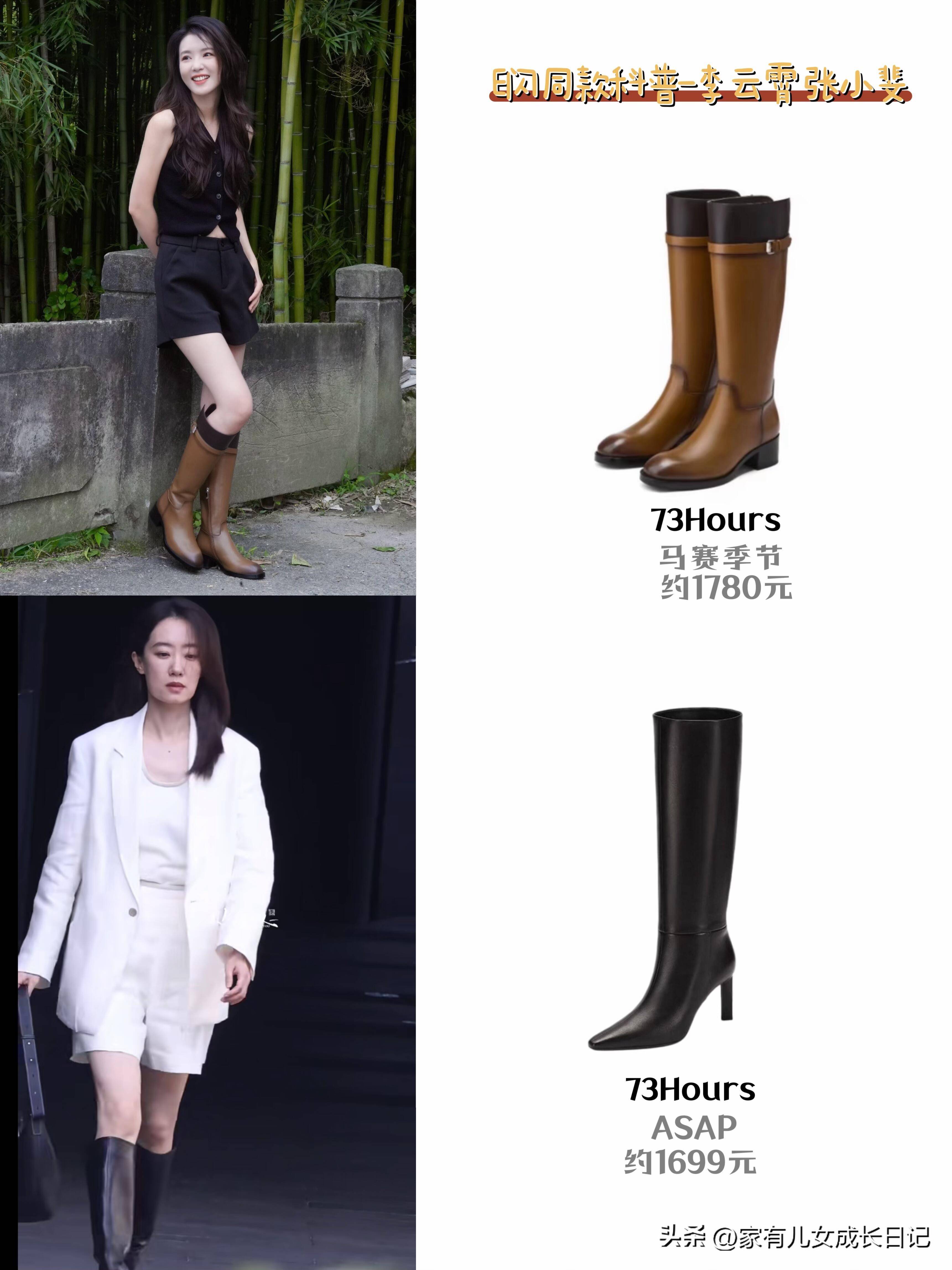 先说说白鹿,她真的是把“甜妹穿靴子”玩明白了!之前看她穿卡其色短裙配同色系骑士靴,小腿被靴子衬得又细又直,而且骑士靴的硬朗中和了短裙的甜,一下子就有了“甜酷少女”那味儿~ 关键是这种长度的靴子,把脚踝到膝盖的线条都修饰得巨好,哪怕秋冬穿短裙,露出一小节大腿,也不会觉得冷,反而有种“又美又会穿”的小心机,日常出门这么搭,回头率绝对高!